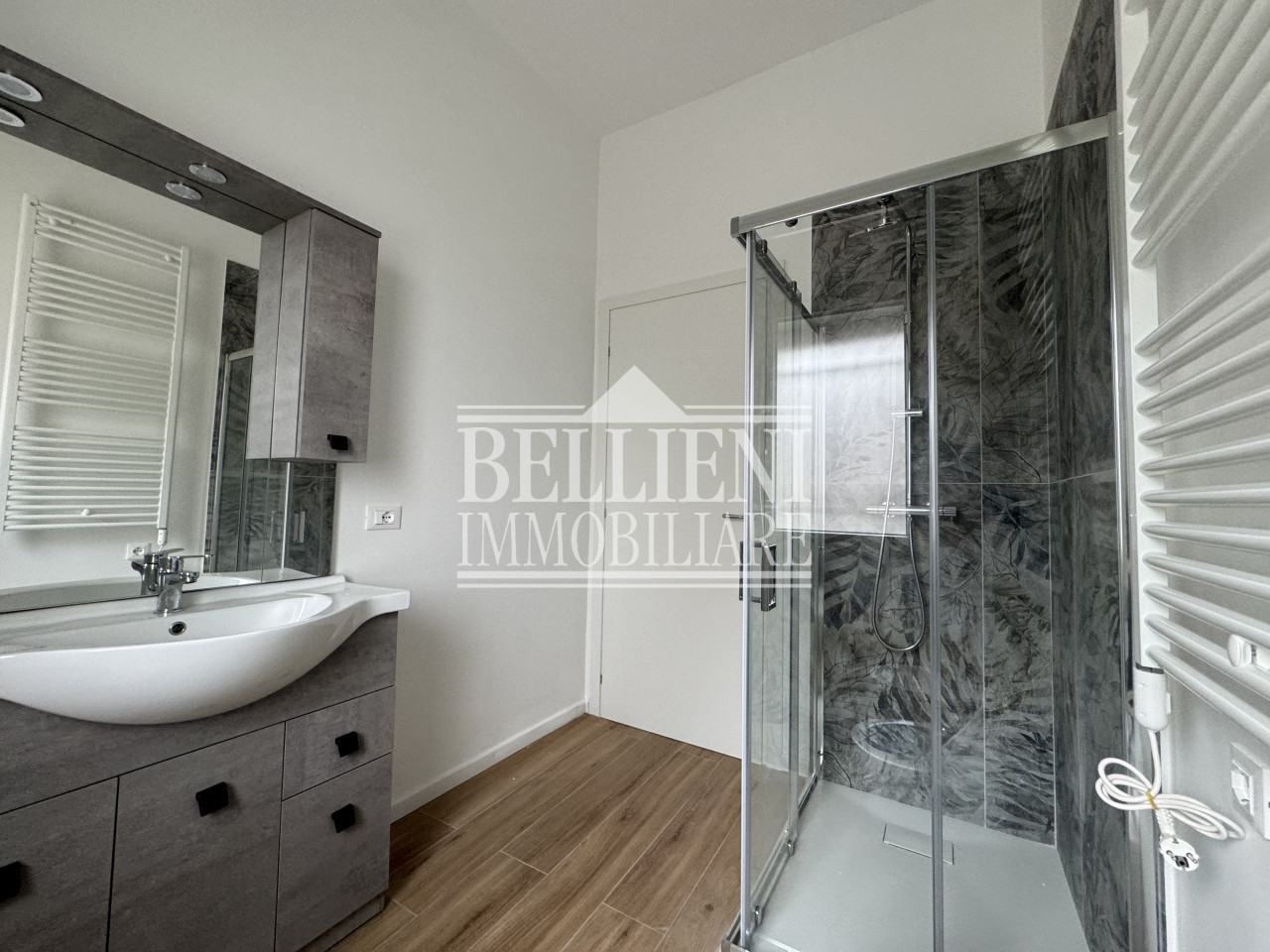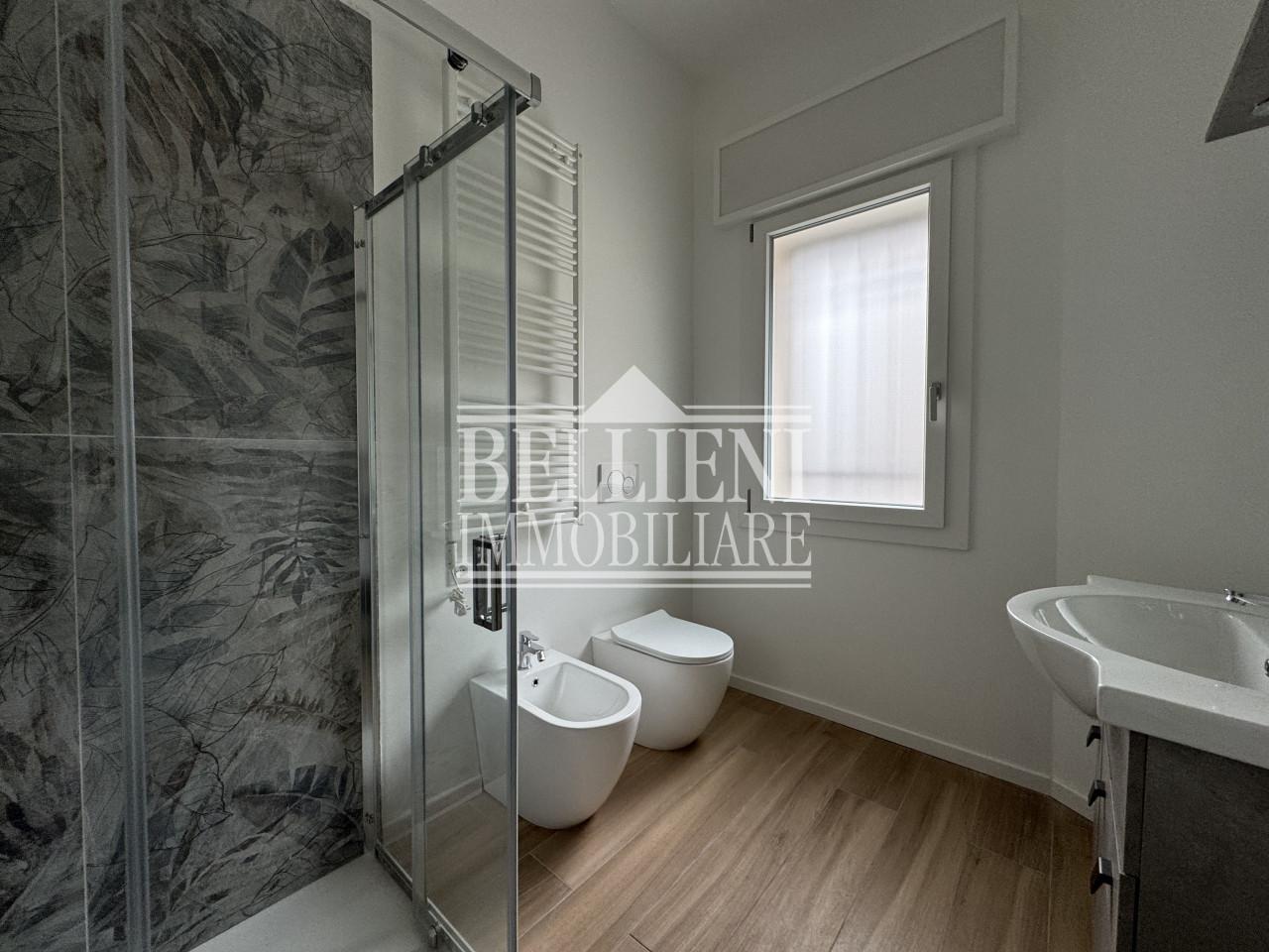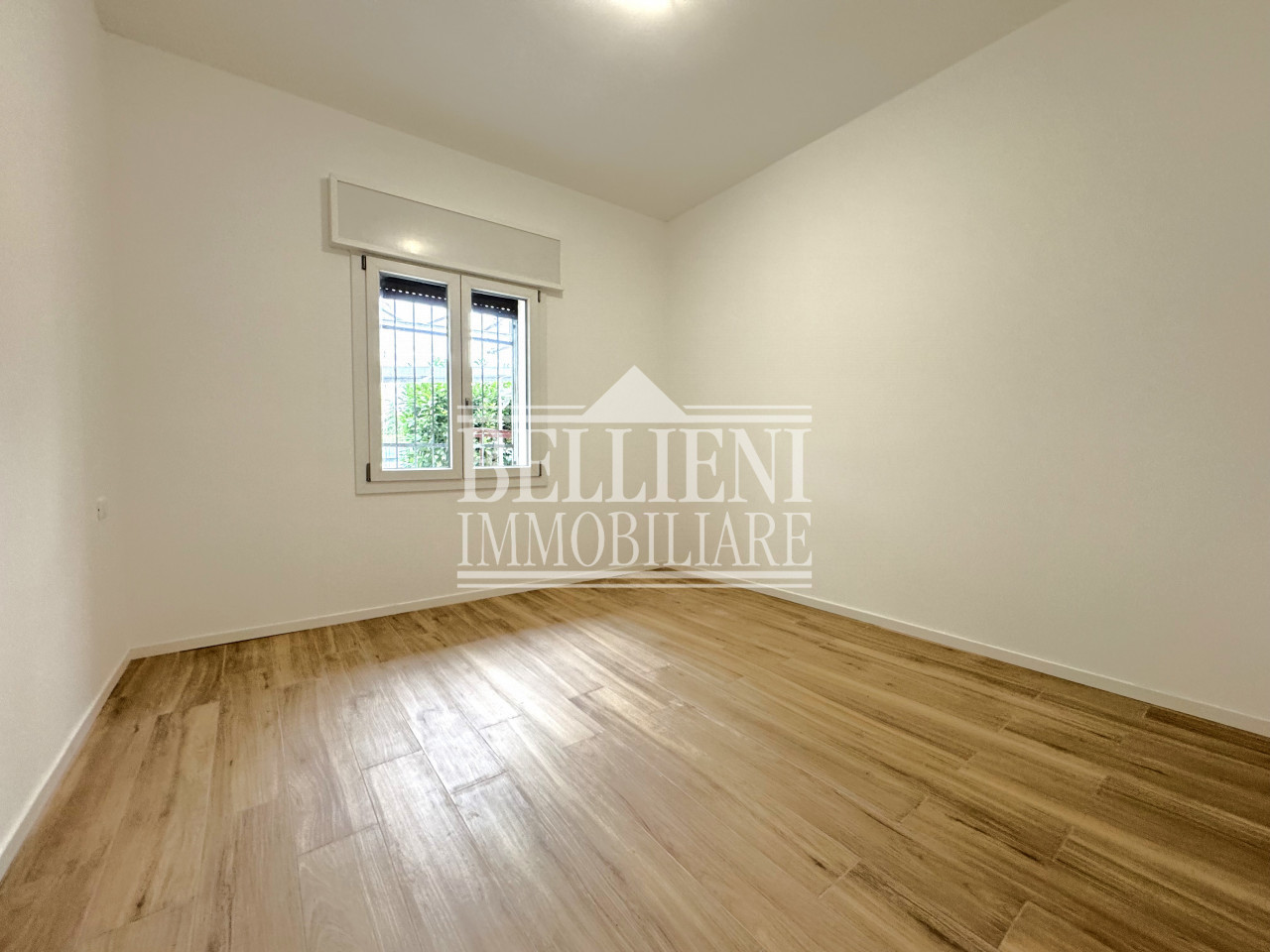 SAN BORTOLO: For rent, a ground floor apartment recently renovated in a small building. The property consists of an entrance leading to the living area with access to the exclusive garden. The sleeping area includes two bedrooms, a windowed bathroom with shower, and a convenient storage room that can be used as a laundry room. The apartment is completed by air conditioning in all rooms and an assigned covered parking space. Very low management costs since the property is entirely electric (induction hob; heat pump).
