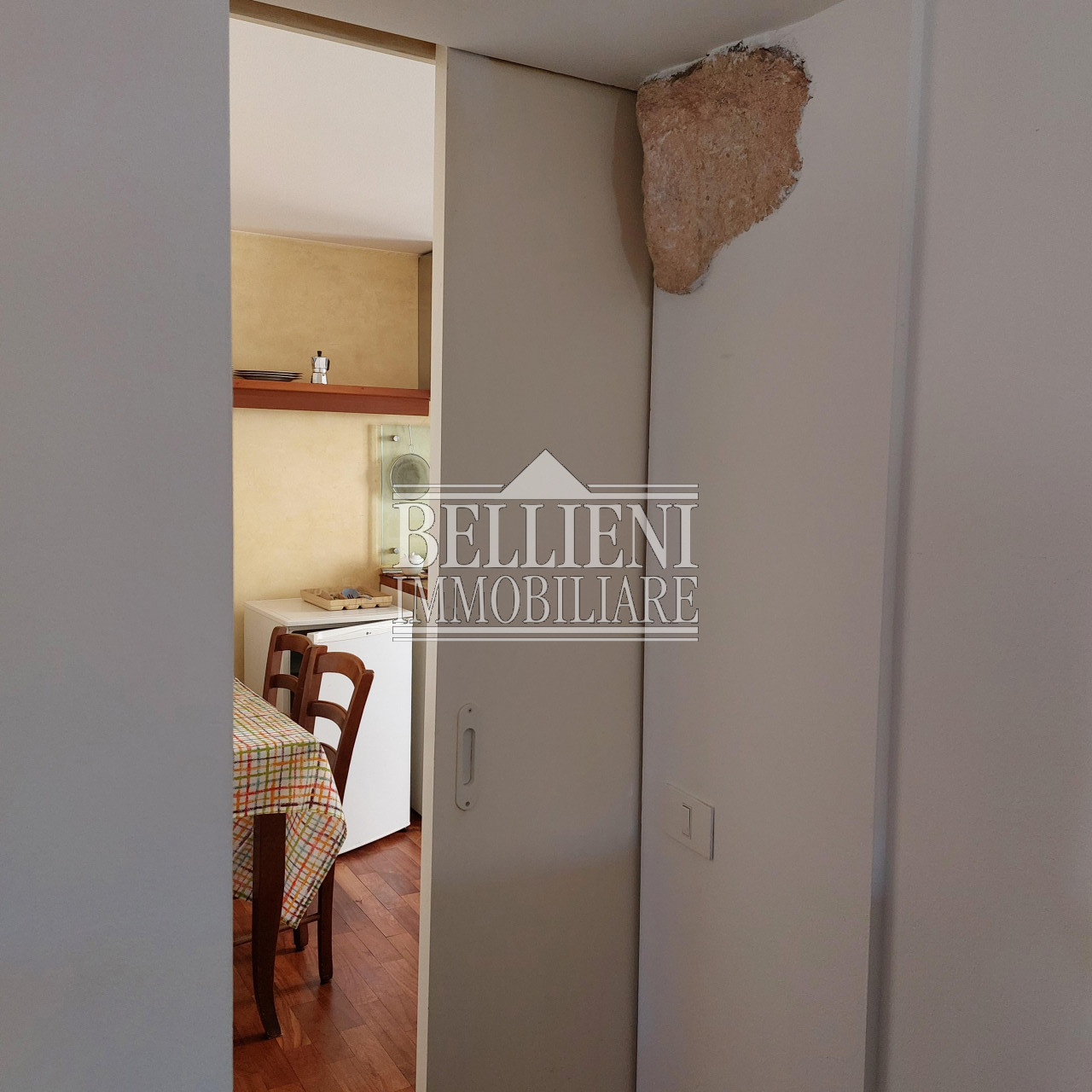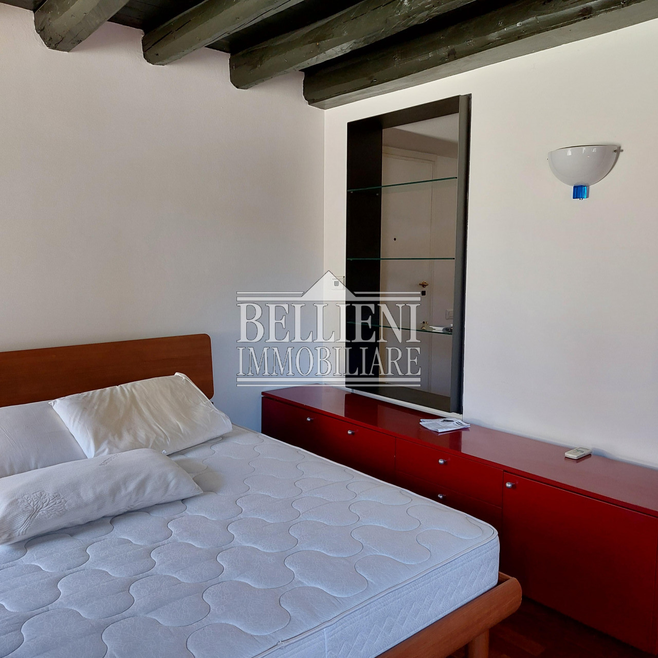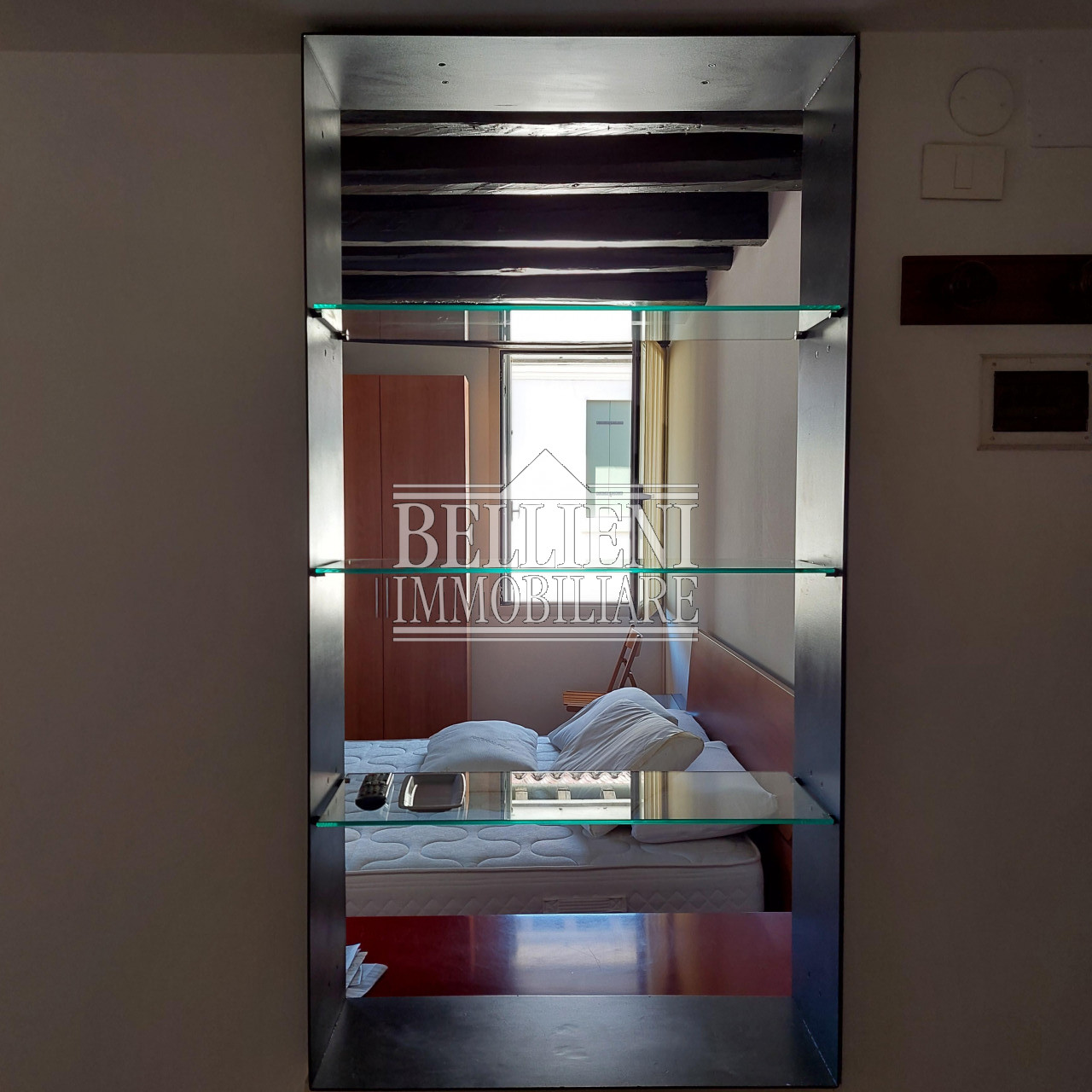 L'immobile è composto da ingresso, salotto con camera matrimoniale, cucina separata e bagno finestrato; è rifinito con pavimenti in legno doussiè, serramenti vetrocamera protetti esternamente da balconi in legno, porte laccate bianche, porta blindata, eleganti faretti, applique Venini e mobilio di pregio.