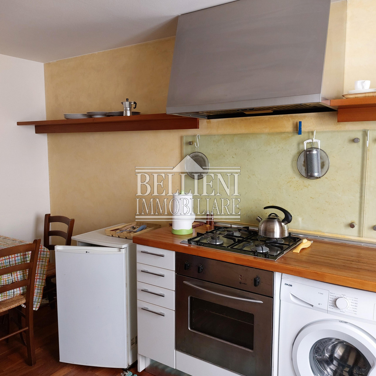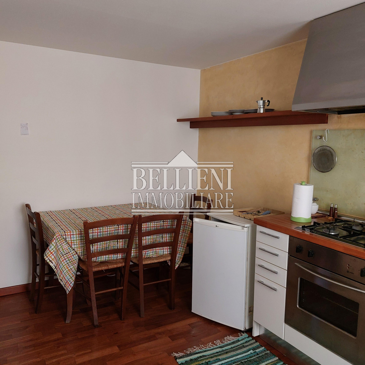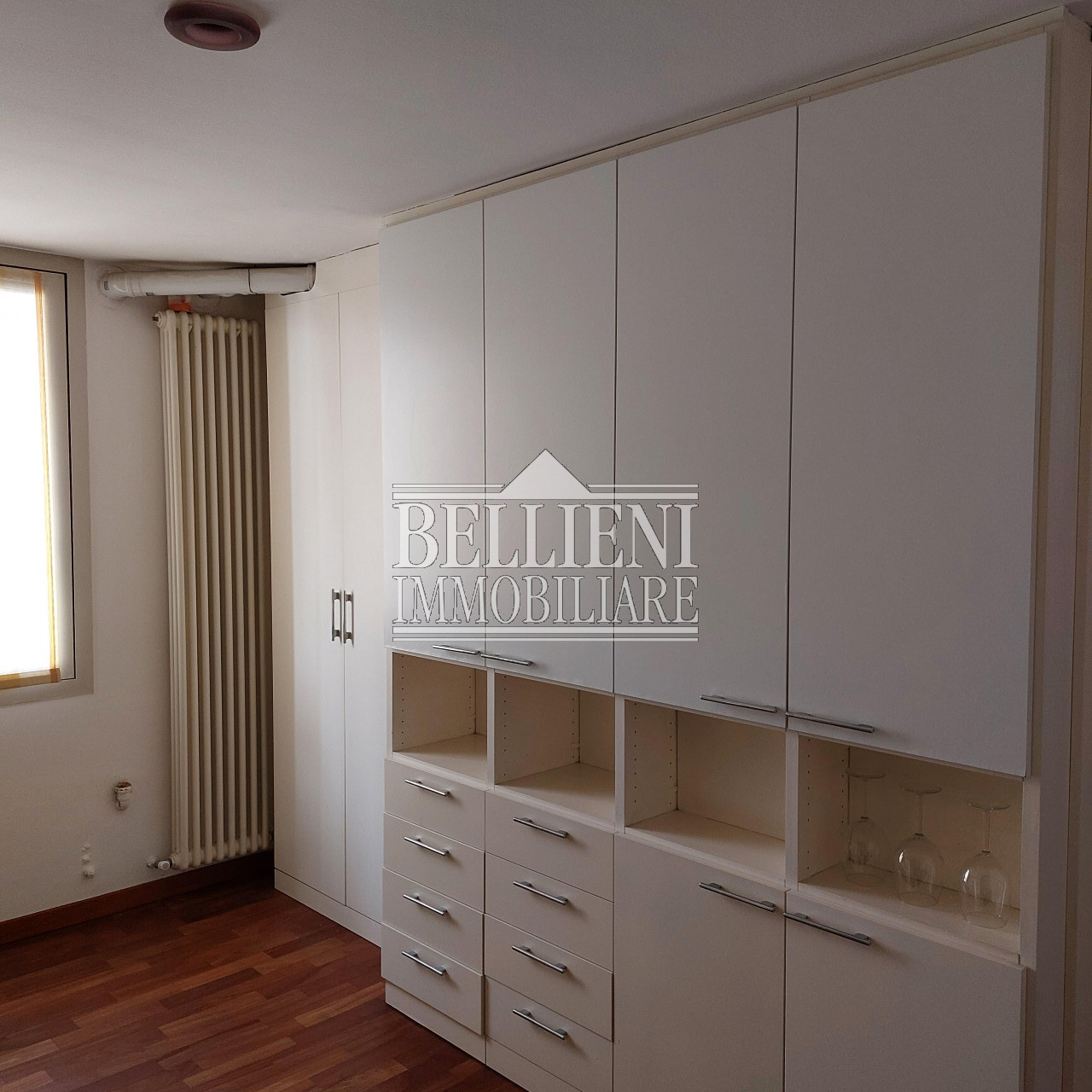 L'immobile è composto da ingresso, salotto con camera matrimoniale, cucina separata e bagno finestrato; è rifinito con pavimenti in legno doussiè, serramenti vetrocamera protetti esternamente da balconi in legno, porte laccate bianche, porta blindata, eleganti faretti, applique Venini e mobilio di pregio.