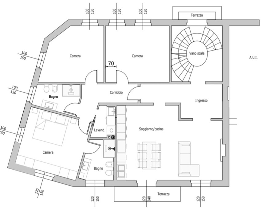 CENTRO STORICO: Introvabile appartamento tricamere finemente ristrutturato in contesto di poche unità. L'appartamento oggetto di una completa ristrutturazione si compone da ingresso su salone open space con terrazza ed impagabile vista sul verde. Nella zona notte trovano spazio due camere matrimoniali dalle generose metrature, un servizio con doccia finestrato, un comodo locale lavanderia ed una camera padronale con servizio finestrato en suite.
