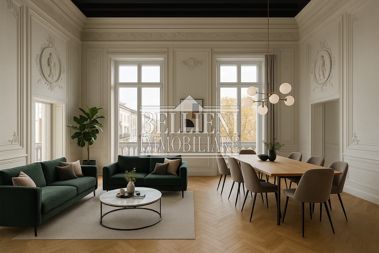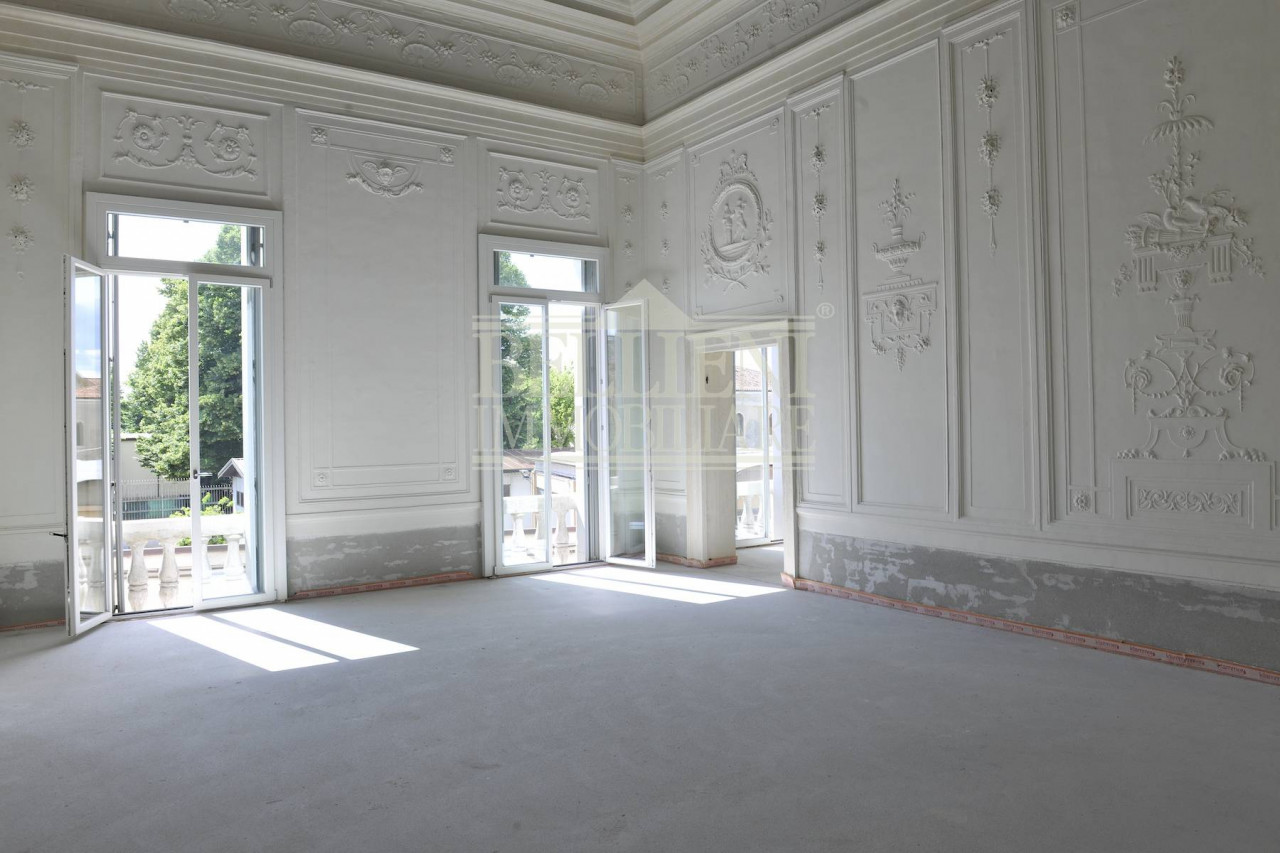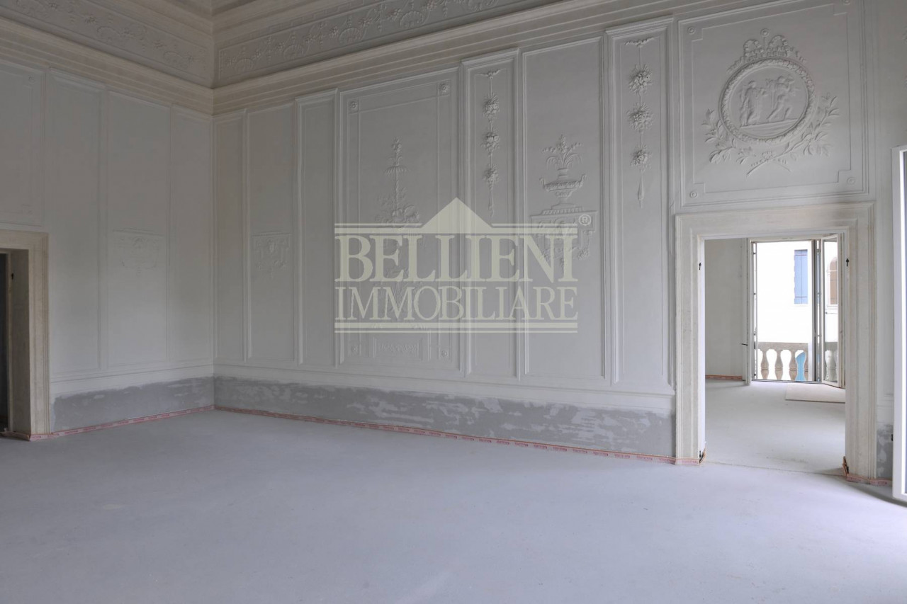 L'ampio e scenografico androne quadrangolare e la splendida facciata di chiara ispirazione palladiana sono il biglietto da visita per accedere al piano nobile di mq 350, composto da ingresso, ampio salone a doppia altezza decorato con stucchi alle pareti, zona pranzo, cucina abitabile separata, quattro camere di cui due suite matrimoniali con bagno padronale, una camera ed un bagno al piano superiore, lavanderia, ripostiglio. L'unità immobiliare è ora al grezzo avanzato per garantire la personalizzazione dell'appartamento a scelta del cliente.